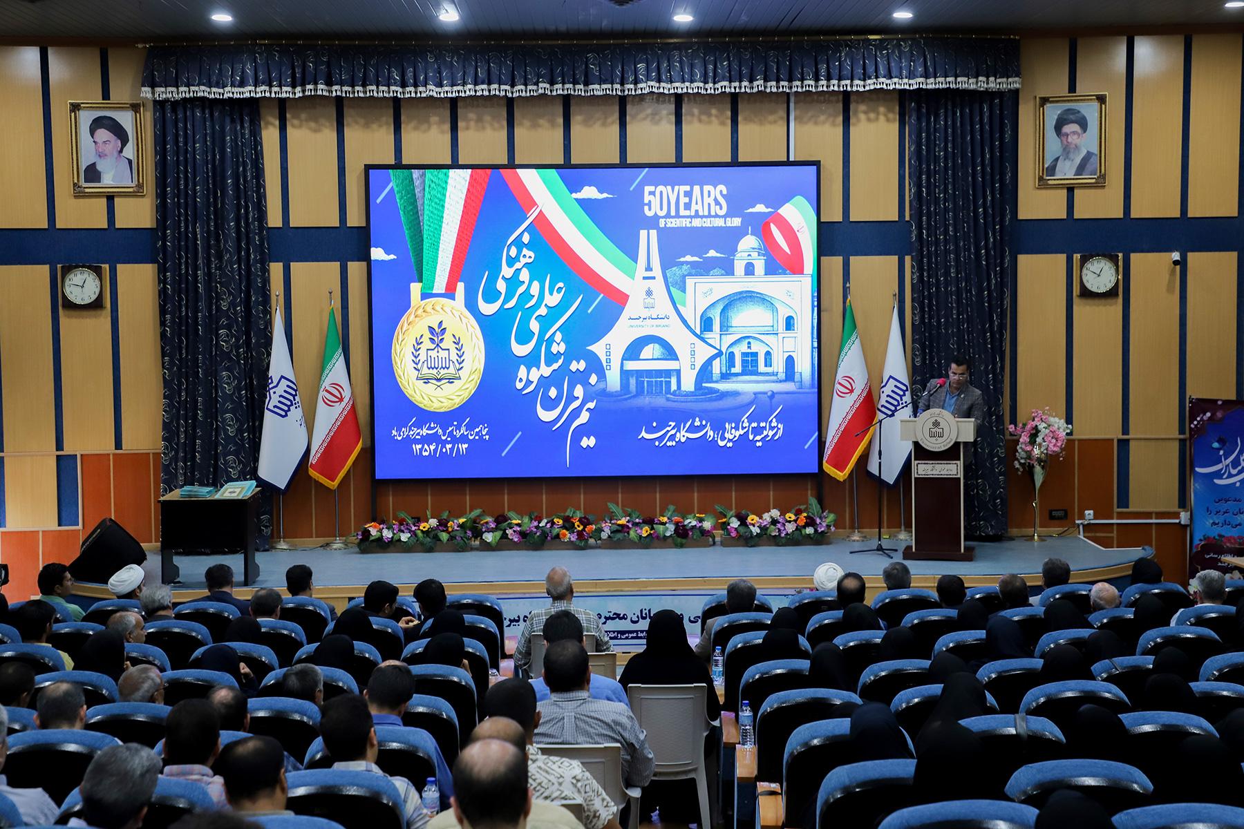 امروز نیز با تکیه بر تجربه این نیم قرن، همراه با دانش استادان، انگیزه و استعداد دانشجویان، و پشتکار و همدلی شما کارکنان عزیز، دانشگاه بیرجند مسیر تعالی و خدمت به جامعه را با گام‌هایی استوار ادامه می‌دهد. یقین دارم با استمرار روحیه خدمتگزاری، امید و تلاش جمعی، آینده‌ای روشن‌تر در انتظار دانشگاه بیرجند خواهد بود.
