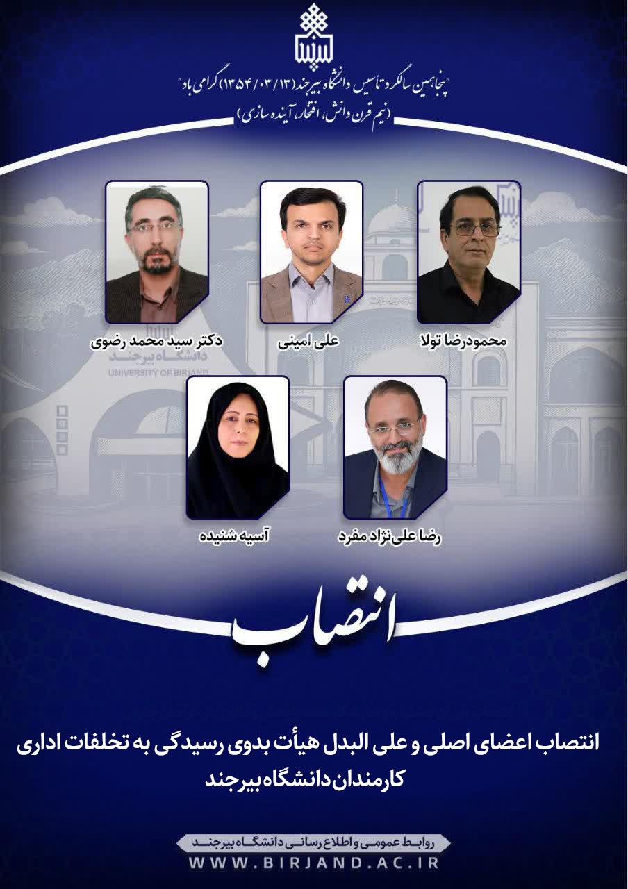 انتصاب اعضای اصلی و علی البدل هیأت بدوی رسیدگی به تخلفات اداری کارمندان دانشگاه بیرجند
