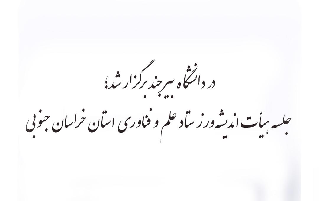 به گزارش روابط عمومی و اطلاع‌رسانی دانشگاه بیرجند، اولین جلسه هیأت اندیشه‌ورز ستاد علم و فناوری استان خراسان جنوبی با محوریت بررسی و بروزرسانی نقشه جامع علمی کشور با حضور مدیران حوزه ستادی و اعضای هیأت اندیشه‌ورز استان، در سالن رسانه دانشگاه بیرجند برگزار گردید.